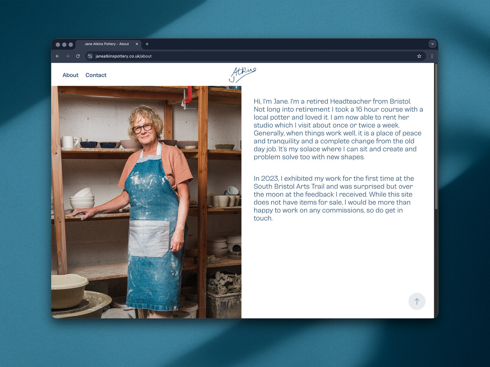 Jane Atkins is a retired headteacher turned potter. She sells her pottery at local craft markets and takes on the occasional commission. She needed a low-cost easy-to-manage online presence with a simple contact form that she could direct potential buyers to.